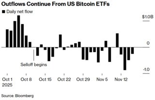 올해 대부분의 기간 비트코인 가격을 떠받친 핵심 기반이었던 기관 자금도 이탈하고 있다.